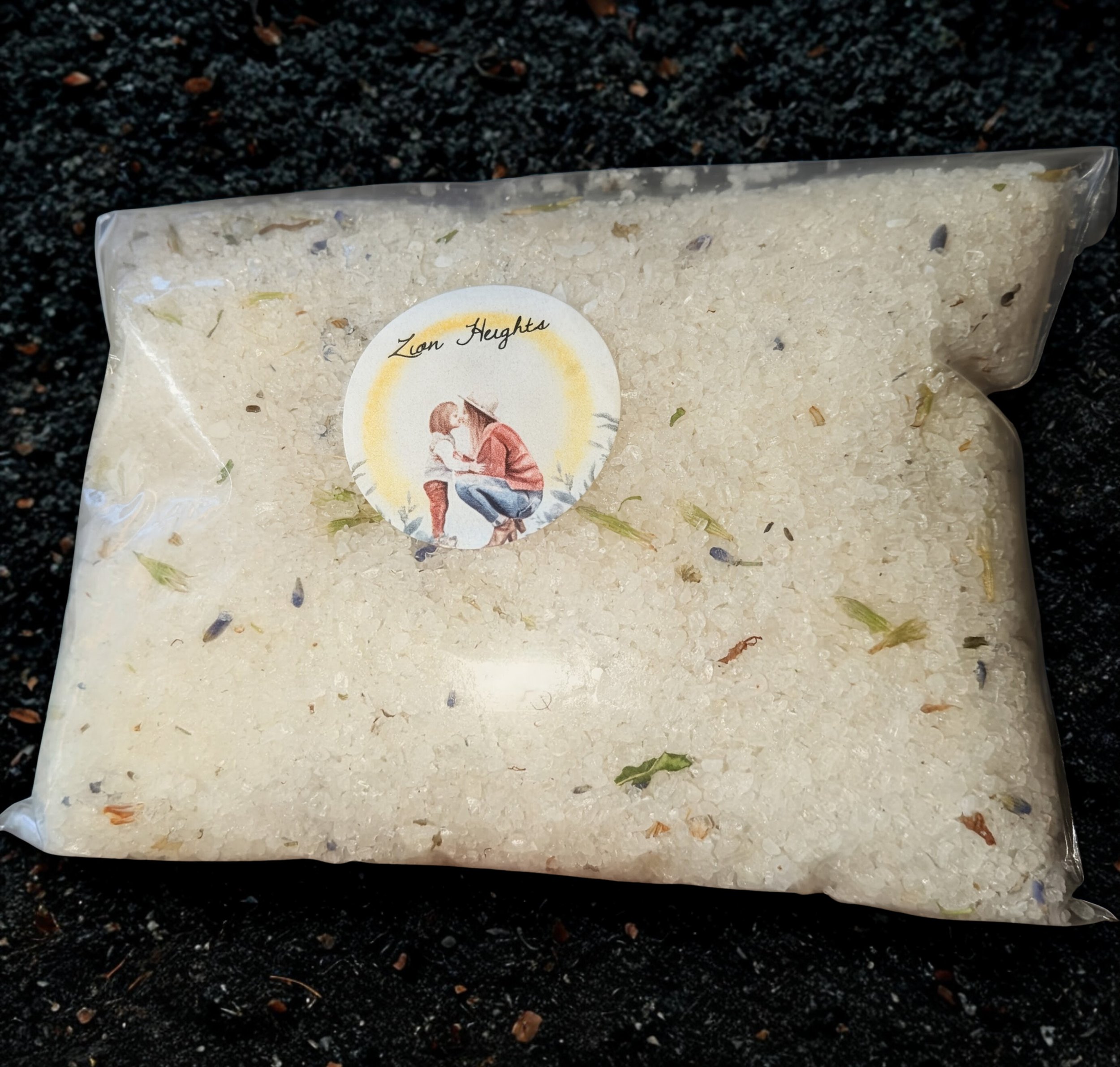 One cup of mineral-rich Dead Sea salt infused with Zion Height's grown wild hyssop and lavender, hand infused frankincense & myrrh, with a whisper of castor and olive oil for silky, nourished skin.