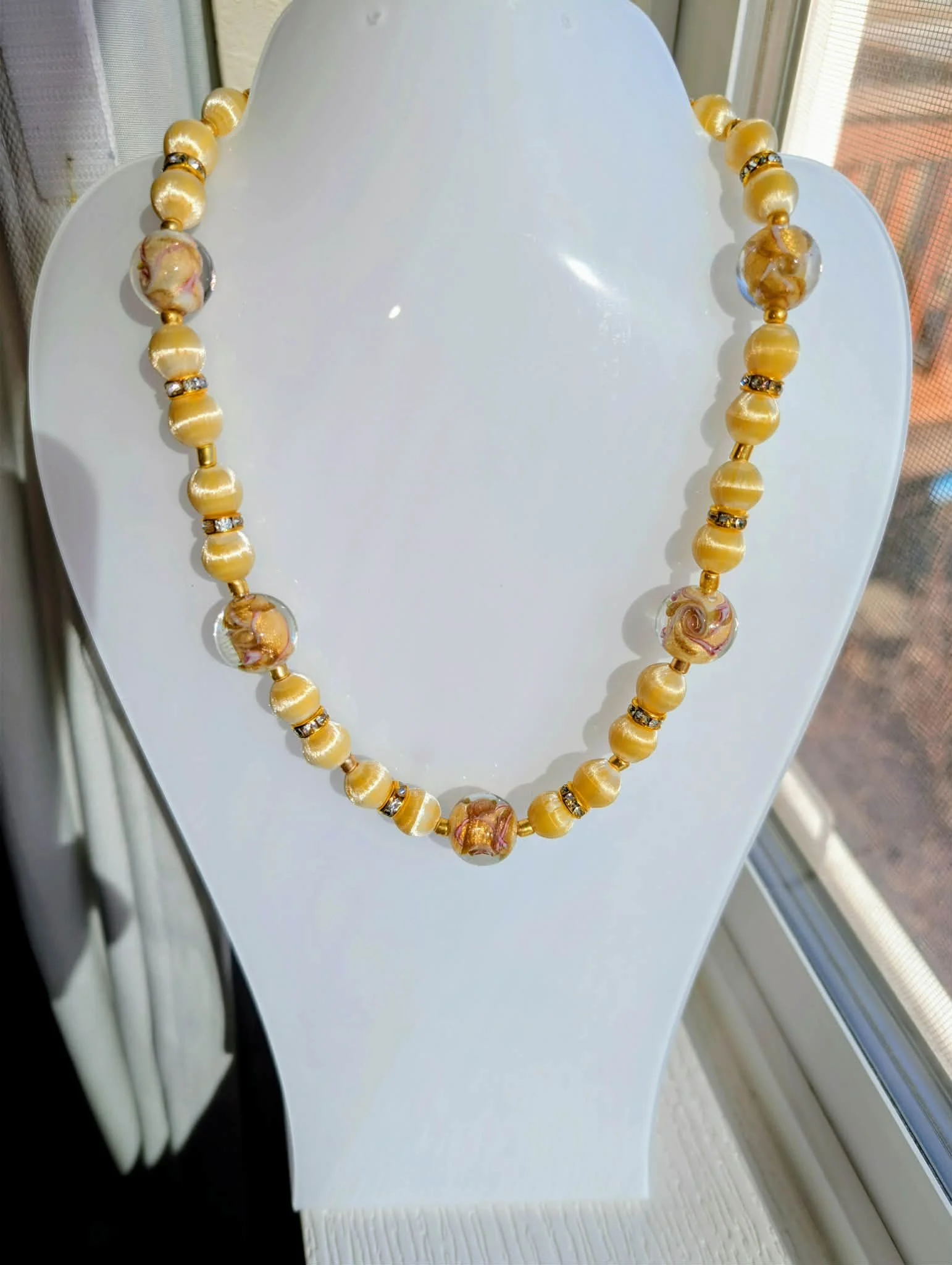 Yellow Silk and Glass Necklace