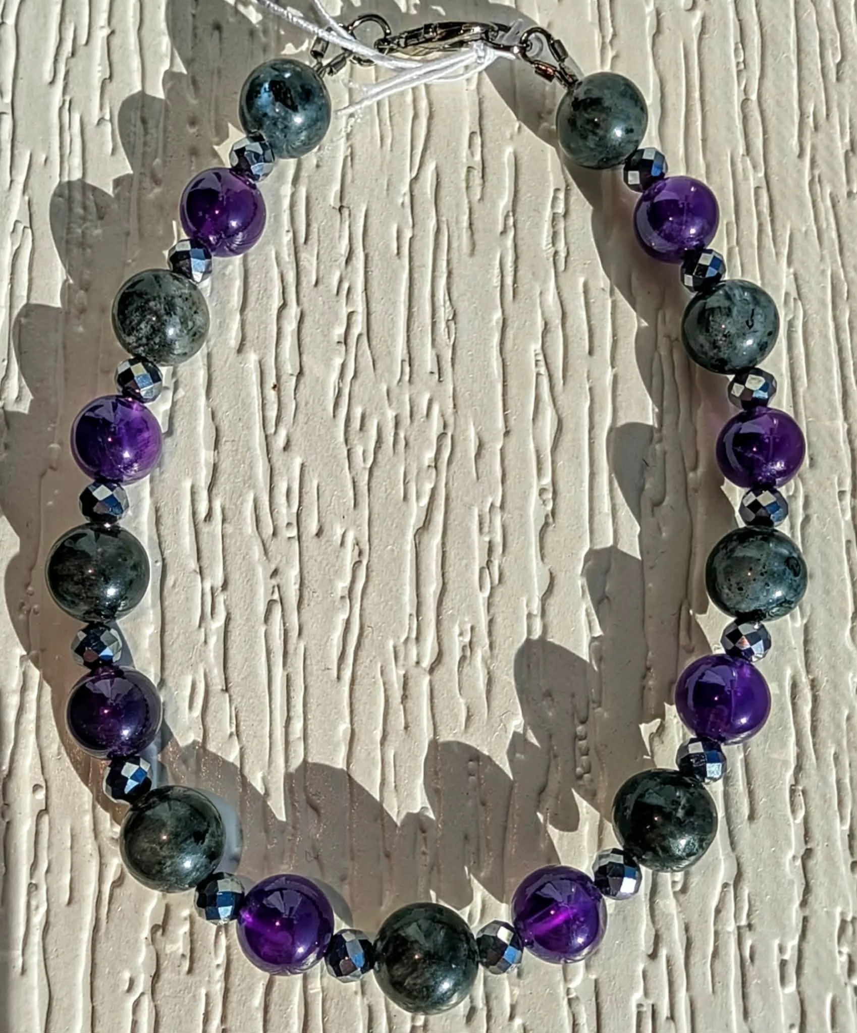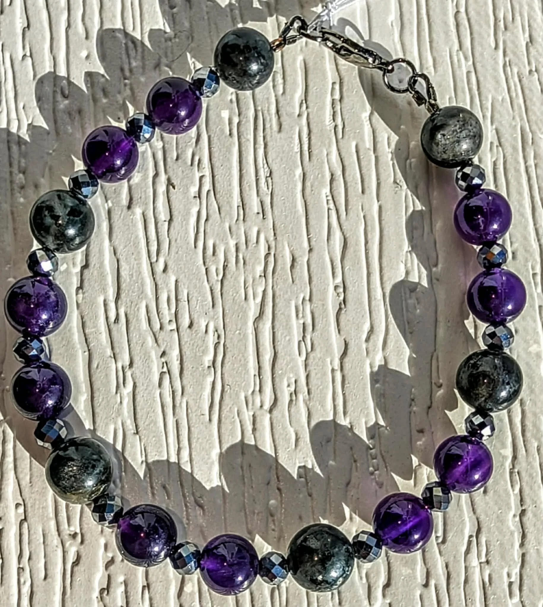 Smaller Larvikite and Amethyst Bracelet