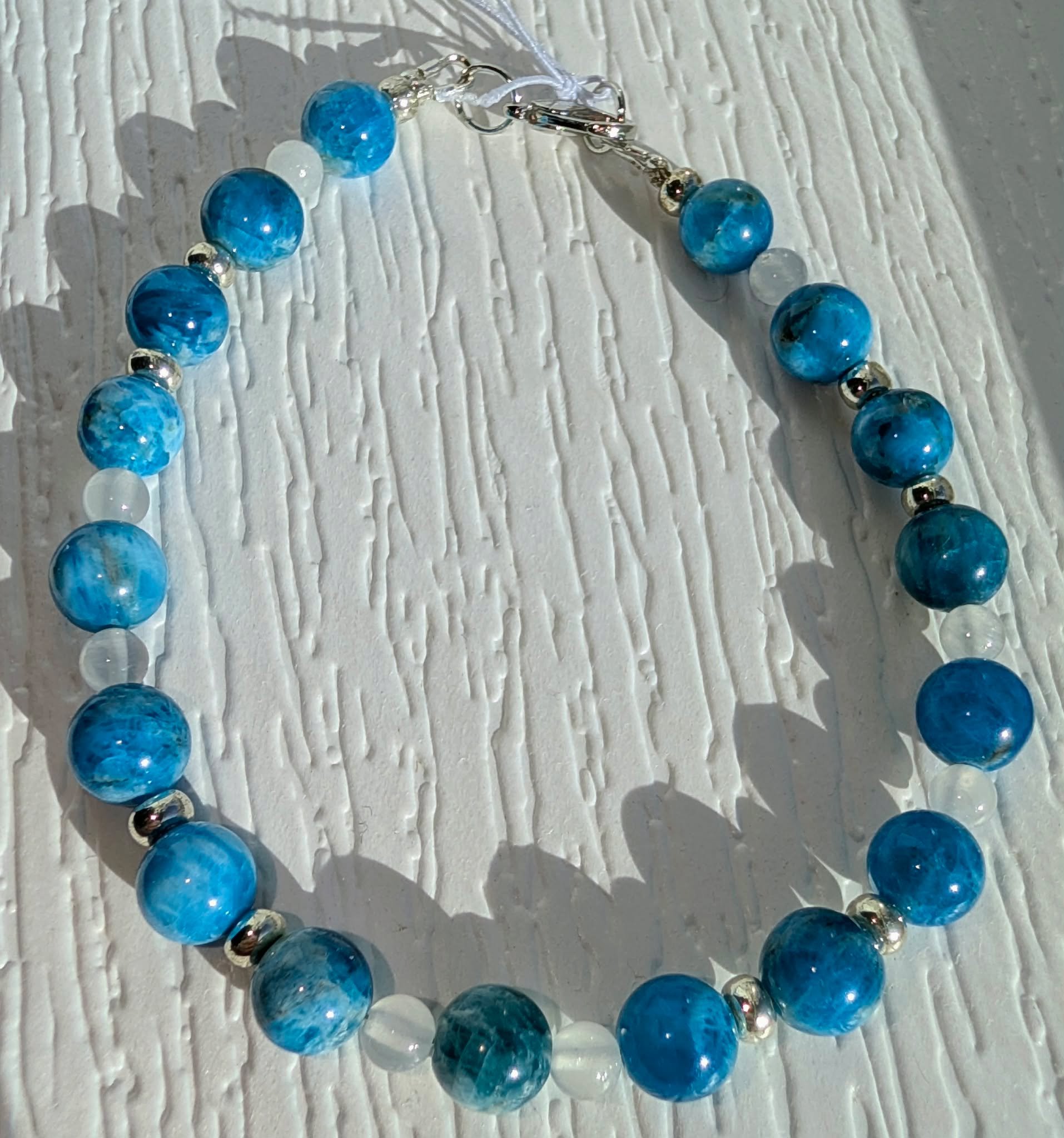 Blue Apatite and Selenite Bracelet