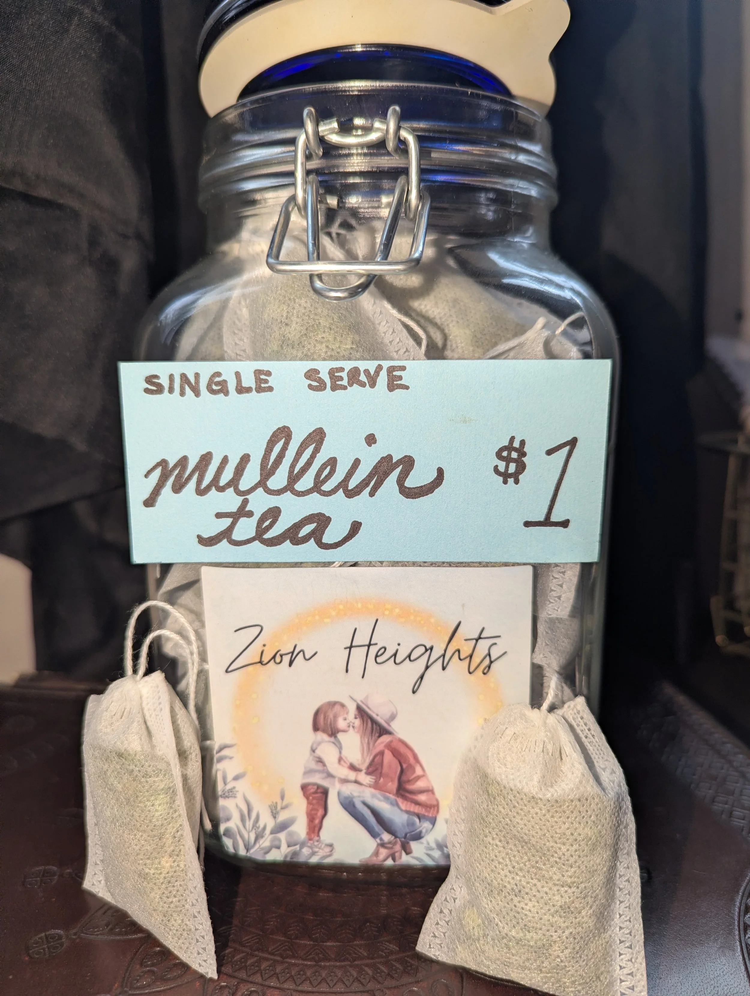 Mountain's Heart Artisanry › Single Serve Mullein Tea Image 1 of 3 Image 2 of 3 Image 3 of 3 Single Serve Mullein Tea $1.00 One Tea bag full of Zion Height's grown Mullein. Hand-harvested and processed. Add to Cart Added! One Tea bag full of Zion Height's grown Mullein. Hand-harvested and processed.