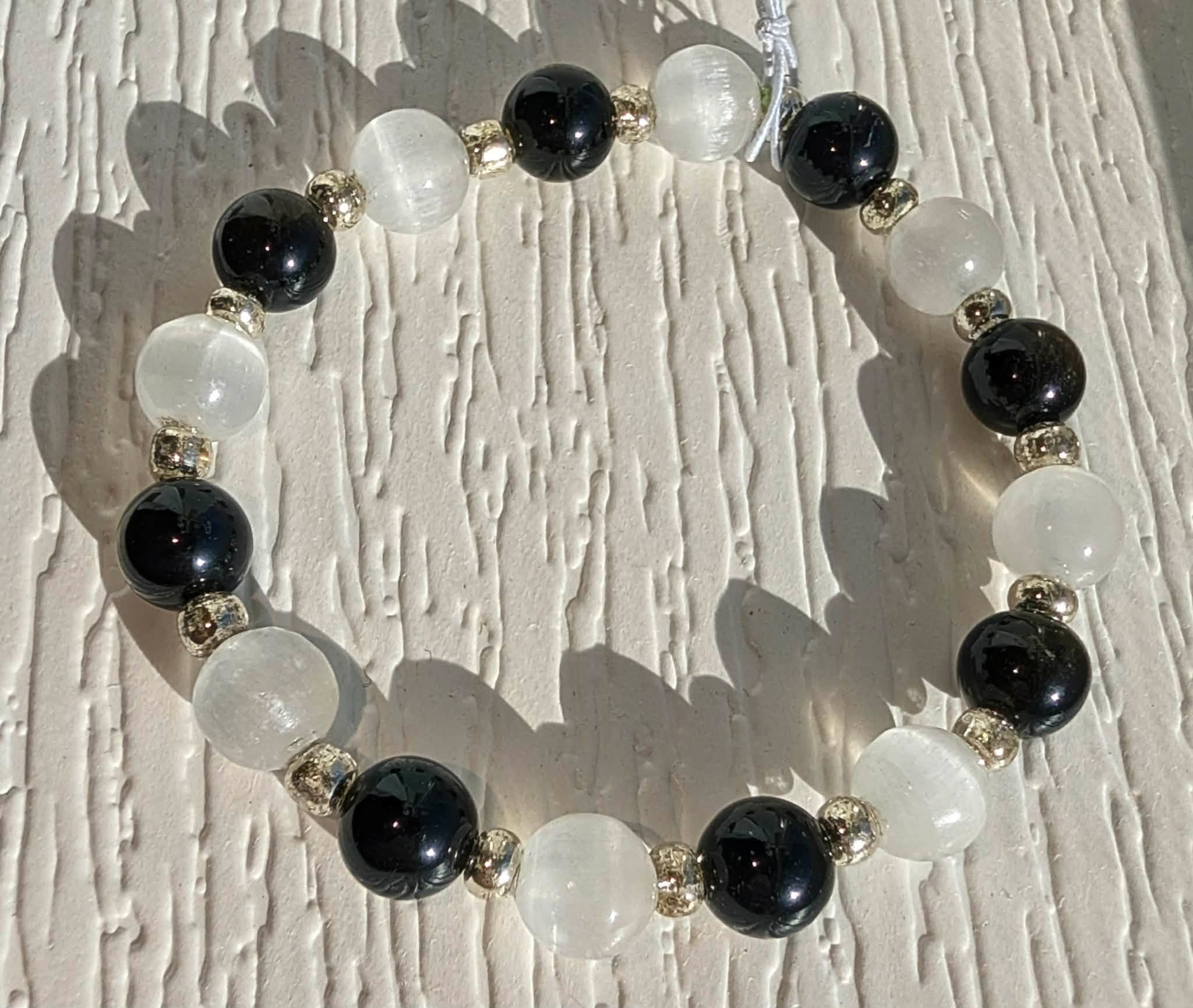 Selinite and Black Obsidian Bracelet